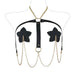 Luce un estilo atrevido con este impresionante conjunto de joyería corporal. Las pezoneras de piel sintética en forma de corazón, adornadas con borlas divertidas, se unen mediante una elegante cadena metálica a una gargantilla a juego, creando un look armonioso y seductor. Diseñado para momentos íntimos o como un accesorio único para conjuntos de moda audaces, este conjunto combina comodidad, estilo y versatilidad. El material de piel sintética garantiza durabilidad, mientras que su diseño de talla única ofrece ajuste y practicidad.